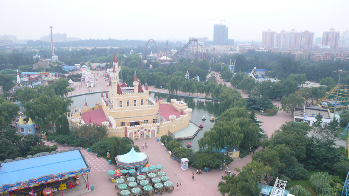 石景山游来園の中心部にそびえ立つ偽シンデレラ城は健在。その内部は「ダンス