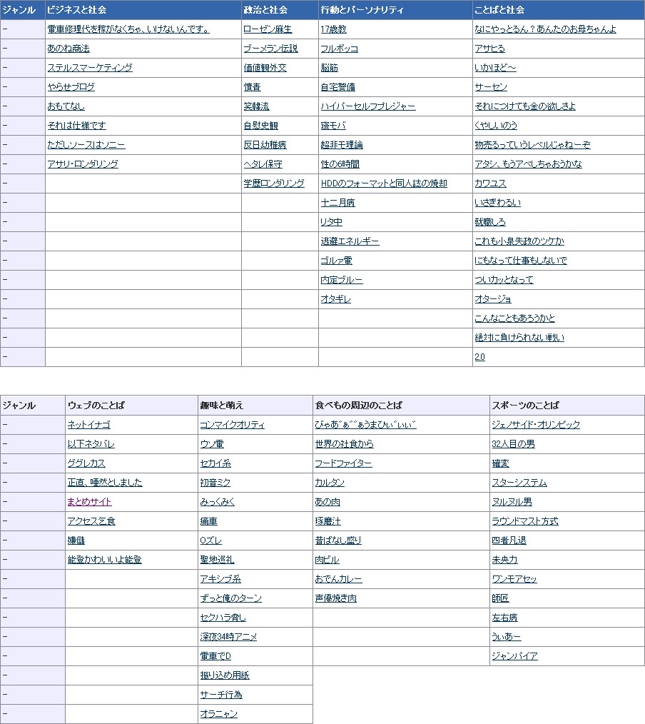 「ウェブのことば」には「ググレカス」「能登かわいいよ能登」などが、