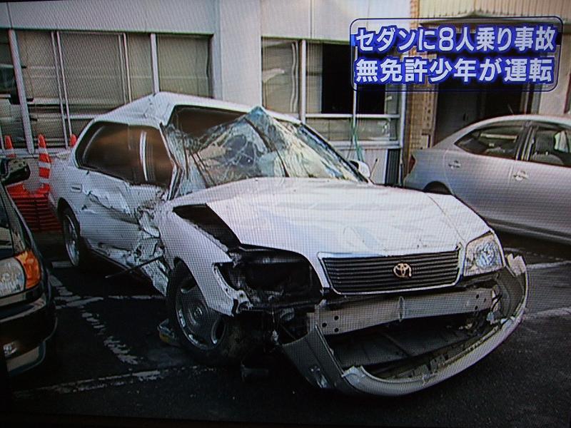 県警厚木署によると、少年は無免許運転だった。「車は1万円で買った。遊んだ勢いで8人乗りをして帰る途中だった」と話しているという。乗用車は5人乗りのセルシオで、運転席に1人、助手席に2人、後部座席に4人、トランクに1人が乗っていたという。