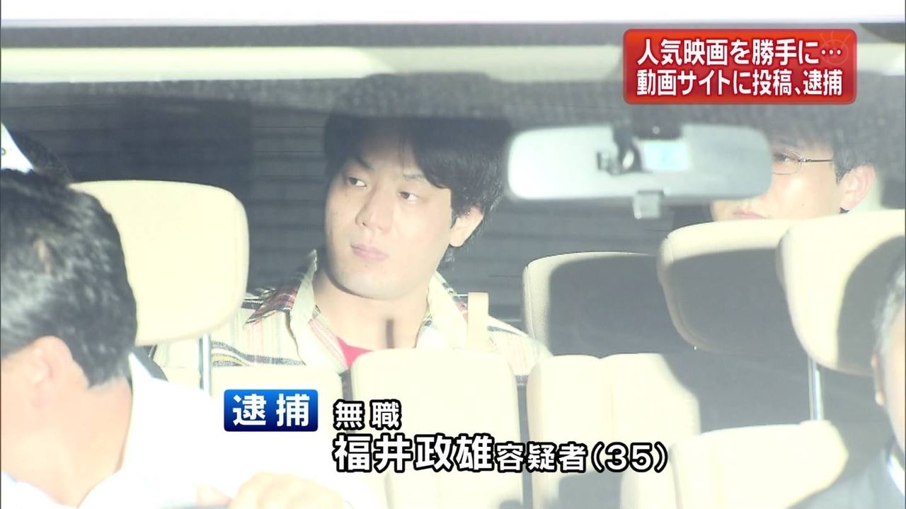 動画サイトに映画を無許可投稿、警視庁が初摘発動画配信サイト「ニコニコ動画」に著作権者の承諾なしに映画作品の動画ファイルを投稿したとして、警視庁サイバー犯罪対策課は24日までに、高知市北竹島町、無職、福井政雄容疑者(35)を著作権法違反(公衆送信権の侵害)の疑いで逮捕した。動画サイトを利用した映画の無許可配信を著作権法違反容疑で逮捕したケースは 全国で初。