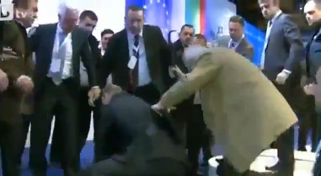 the ground by security guards and delegates attending the conference in Sofia.