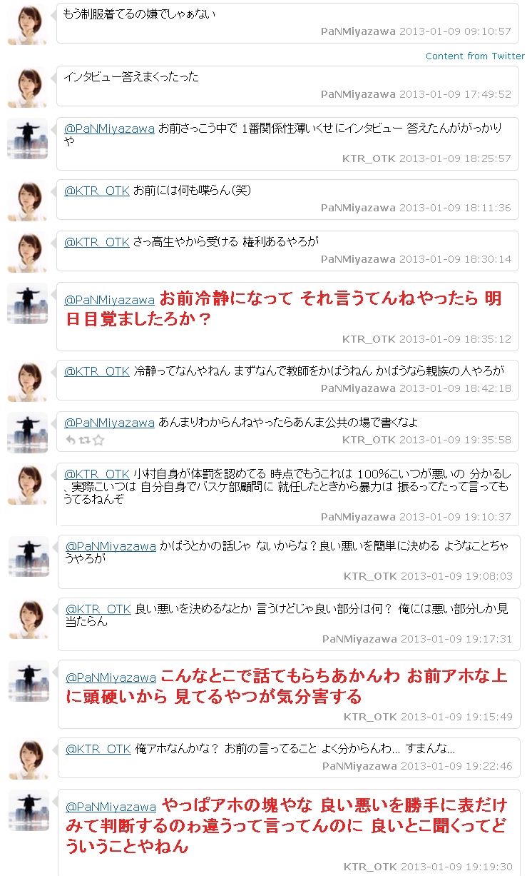 J-CAST¥Ë¥å¡¼¥¹¤¬³Îǧ¤·¤¿¸Â¤ê¤Ç¤Ï¡¢Ä䳨½èʬ¤ò¼õ¤±¤¿¤È¤µ¤ì¤ëºùµÜ¹âºß³ØÃæ¤ÎÃË»ÒÀ¸Å̤Ï2013ǯ1·î9Æü¤«¤é¡¢ÂÎȳ¼«»¦¤Ë´Ø¤¹¤ë¥Ä¥¤¡¼¥È¤ò»Ï¤á¤Æ¤¤¤ë¡£