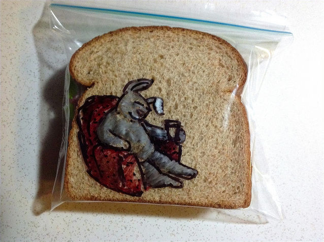 「お父さんが毎日サンドイッチの袋に描いてるアートがすごい」