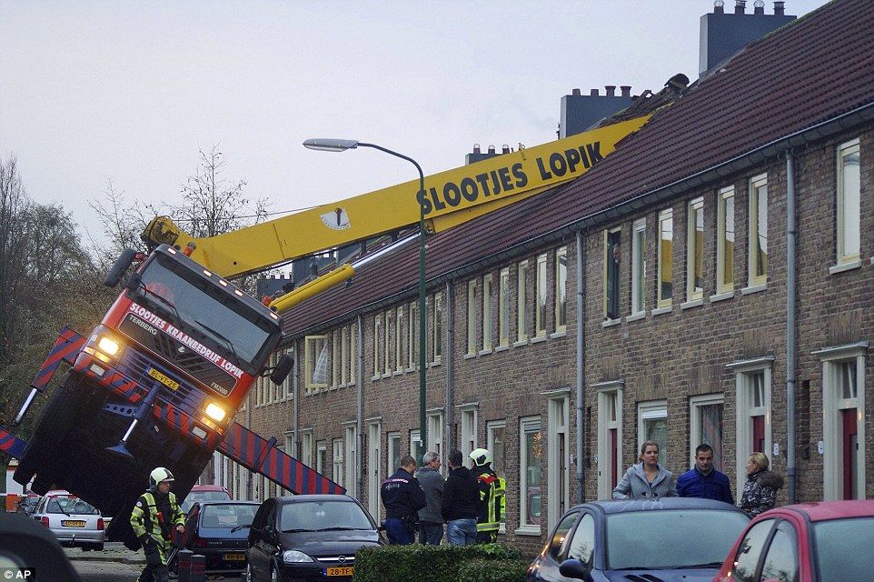 ところがクレーン車がひっくり返ってしまい、隣家の屋根をぶち抜き、大きな穴をあけてしまった。この建物は危険だと判断され、計6棟の住人が避難することになってしまった。
