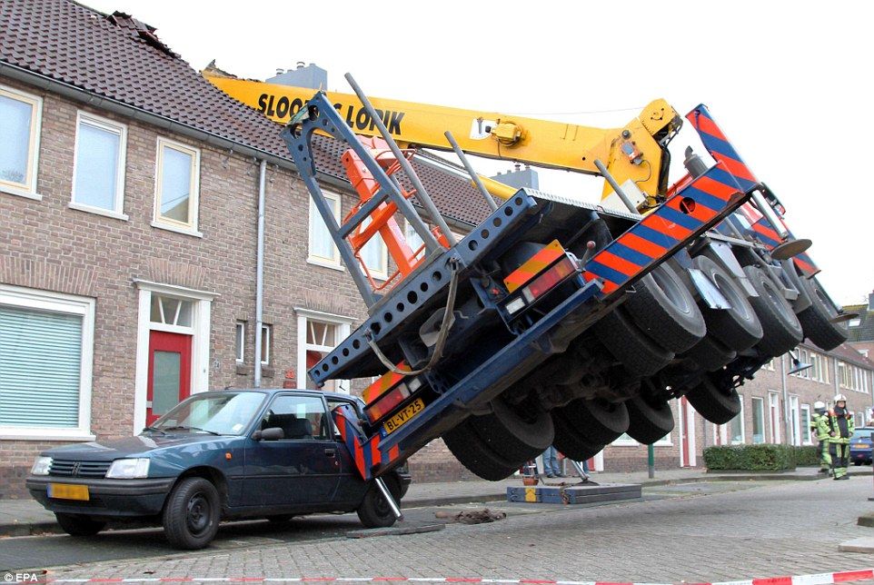 オランダのエイセルスタインの町でガールフレンドに結婚を申し込もうとした男性。クレーン車のバスケットに乗って彼女の寝室の窓に近づきプロポーズしようと計画した。ところがクレーン車がひっくり返ってしまい、隣家の屋根をぶち抜き、大きな穴をあけてしまった。この建物は危険だと判断され、計6棟の住人が避難することになってしまった。