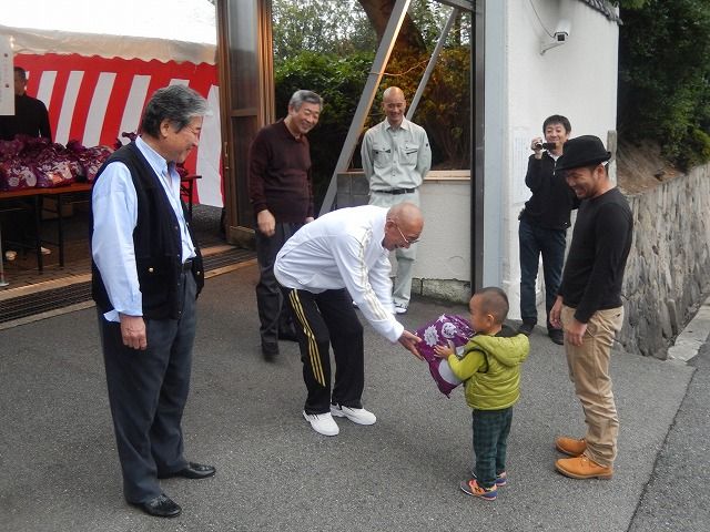 >近隣の子供たちに菓子を手渡ししていた行事