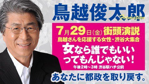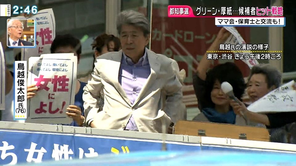 【都知事選】 鳥越氏、新スローガン「女性によし!」