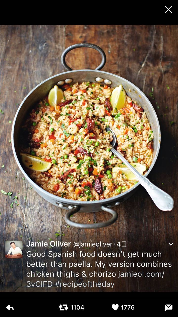【AFP=時事】英国のセレブシェフ、ジェイミー・オリバー(Jamie Oliver)さんが、自分流にアレンジしたパエリアの写真を自身のツイッター(Twitter)に投稿し、「このチョリソーと鶏もも肉が入ったパエリアは最高に美味しい」とコメントしたことをきっかけに、スペインの人々から憤りの声があがっている。スペインの伝統料理を守ろうとする人たちからは即座に、パエリアにチョリソーを入れることなど到底受け入れられないという敵意に満ちたコメントが殺到した。