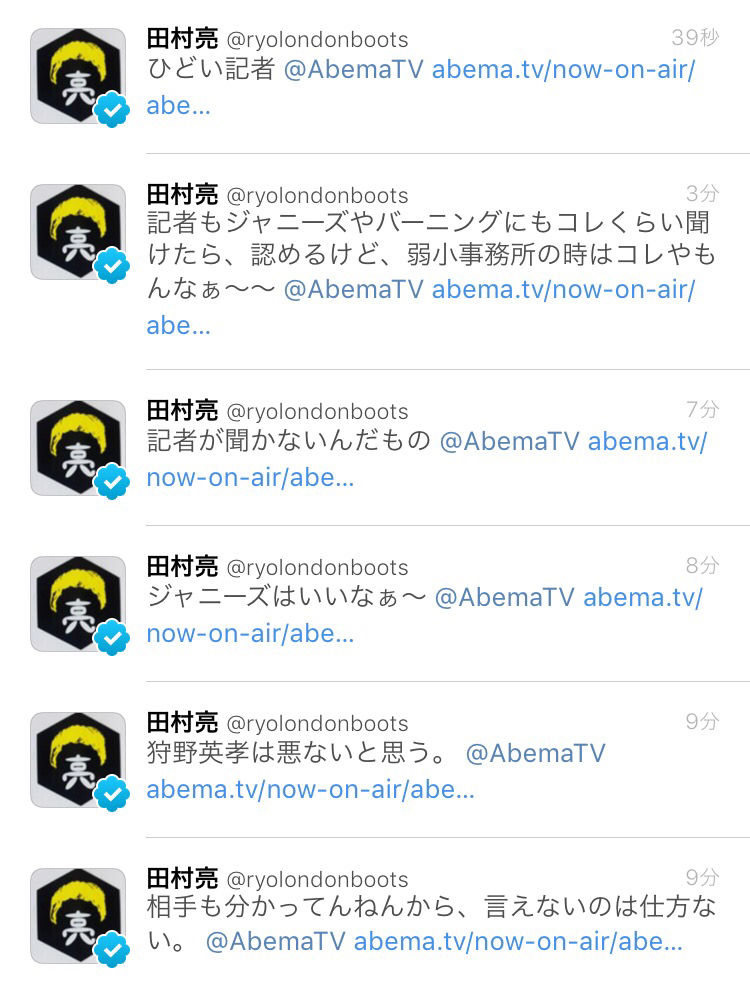 21Æü¤Î¸áÁ°¤Ë¹Ô¤ï¤ì¤¿¼íÌî±Ñ¹§¤µ¤ó¤Îµ¼Ô²ñ¸«¡£¤½¤³¤Ç¤Ï20ÆüȯÇä¤Î¡Ø¥Õ¥é¥¤¥Ç¡¼¡Ù¤Î°ü¹Ô¤Ë¤Ä¤¤¤Æ¸ì¤é¤ì̵´ü¸Â¤Î¶à¿µ´ü´Ö¤òÀߤ±¤ë¤È¸ì¤Ã¤¿¡£¤½¤Î²ñ¸«¤Ï¡Ø¥Ë¥³¥Ë¥³À¸ÊüÁ÷¡Ù¤ä¡ØAbemaTV¡Ù¤ÇÇÛ¿®¤µ¤ì¤¿¤¬¡¢¡ØAbemaTV¡Ù¤Ë¼íÌî±Ñ¹§¤µ¤ó¤òÍʸ¤ë¥³¥á¥ó¥È¤¬¸«¤é¤ì¤¿¡£¤·¤«¤â¤½¤Î¥³¥á¥ó¥È¤Ï¤³¤È¤â¤¢¤í¤¦¤³¤È¤«¼«¿È¤Î¥Ä¥¤¥Ã¥¿¡¼¤Ë¥Ä¥¤¡¼¥È¤¹¤ë¤è¤¦¤ËÏ¢·È¤µ¤ì¤Æ¤¤¤¿¤Î¤À¡£¤½¤Î¿Íʪ¤Ï¥í¥ó¥É¥ó¥Ö¡¼¥Ä1¹æ2¹æ¤ÎÅÄ¼μ¤µ¤ó¡£