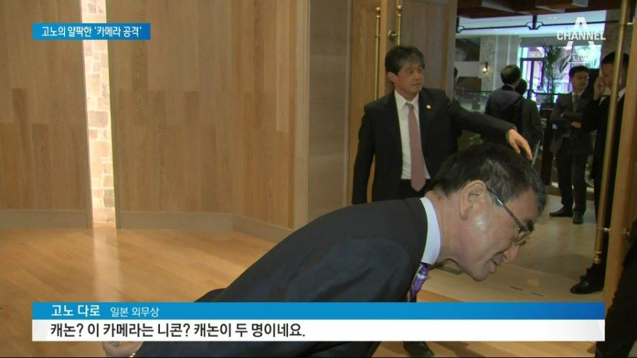 河野外相、韓国記者団に「それはキヤノン?ニコン?」と覗き込む→これが一国の顔かと界隈ざわつく