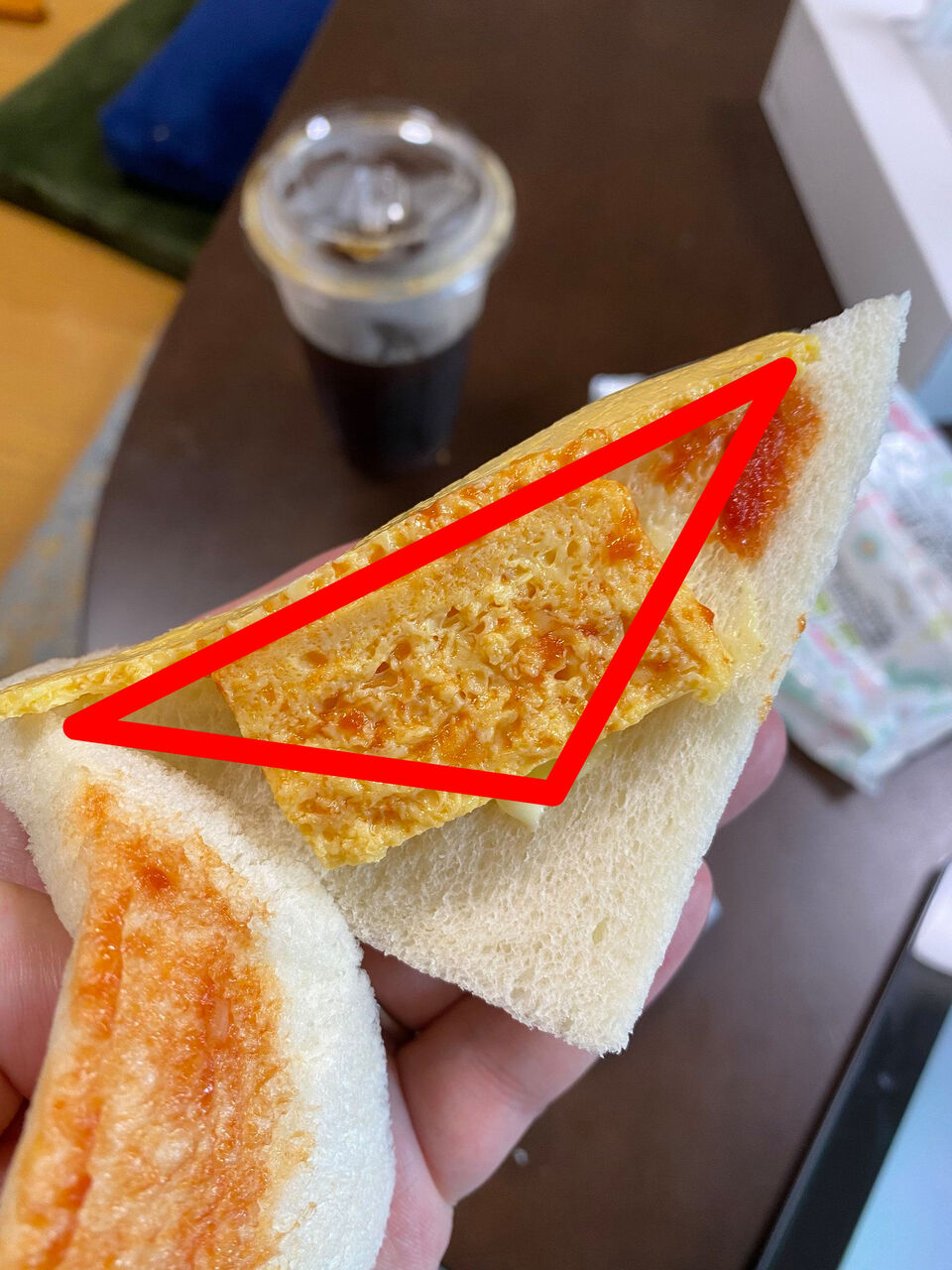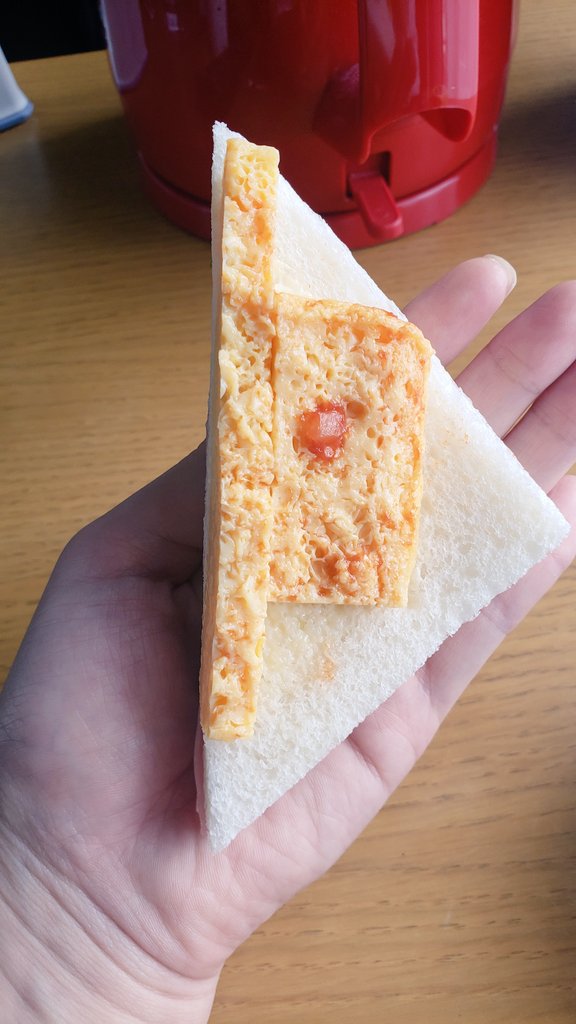 卵部分をパンの三角形と揃えるよりちょうど1/2の量で済んでるなコレ