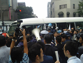 ¤¹¤ë¤È¡¢Ìó£µ£°¿Í¤ÎÆÃ¹¶Éþ»Ñ¤ÎÃËÀ¤é¤¬¥Ð¥¹¤ò¼è¤ê°Ï¤ß¡¢·Ù»ëÄ£¤ÎÀÖ¿§¥³¡¼¥ó¤ä»±¤ò¥Ð¥¹¤ËÅꤲ¤Ä¤±¡¢¡Ö¤È¤Ã¤È¤È¾Ã¤¨¤í¡×¤È¶«¤Ó¤Ê¤¬¤é¡¢¥Ð¥¹¤«¤é¿Í¤ò°ú¤¤º¤ê½Ð¤½¤¦¤È¤¹¤ëÍðÆ®Áû¤®¤Ë¡£