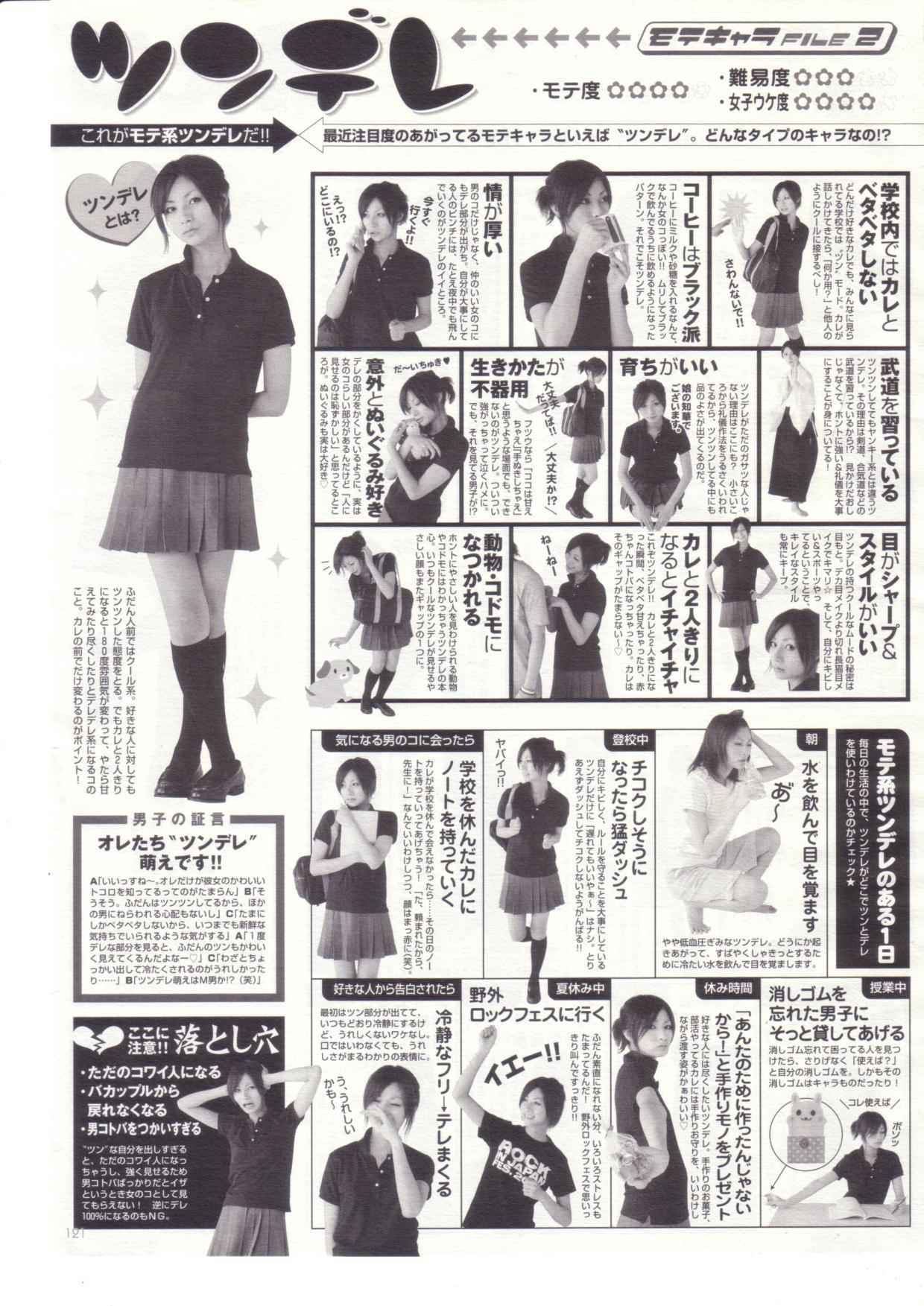 「(読みながら)・・・野外ロックフェスはないな(笑)。でも、女性誌にしてはイイ線いってるほうだと思うよ。今年の1月頃に発売された某女性誌のツンデレ特集はひどかった。