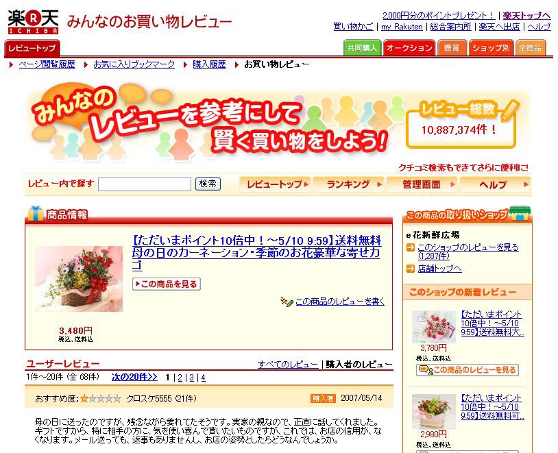 【楽天通販】 「母の日のプレゼントにした花が枯れてました」…苦情相次ぐ